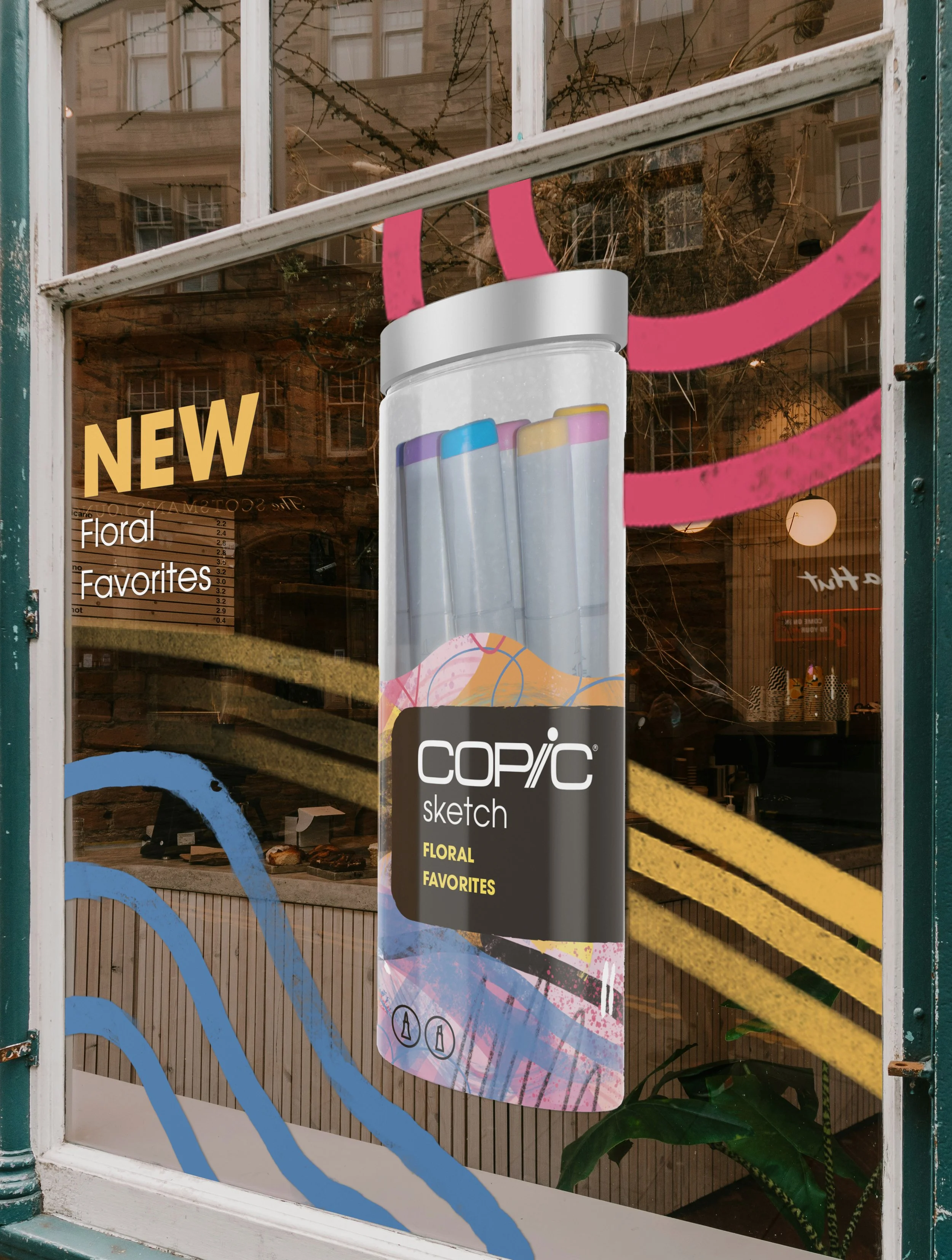 For this project, I chose to make a scribbly, hand-drawn design for this brand because it would work well with the markers and art theme. I also decided to incorporate the colors that come in the Floral Favorites 2 package into my redesign. I wanted to step out of my comfort zone, going from simple, clean designs to a more abstract, artsy one.